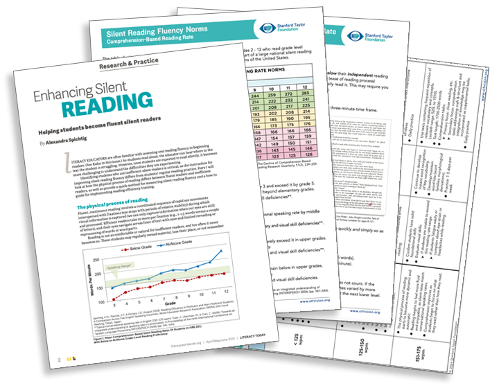 Identifying students who are inefficient silent readers is critical, as the instruction for improving silent reading fluency differs from students’ regular reading practice. These handouts provide you with Silent Reading Norm Rates, as well as a quick method for measuring silent reading fluency and a how-to guide for implementing reading efficiency training.